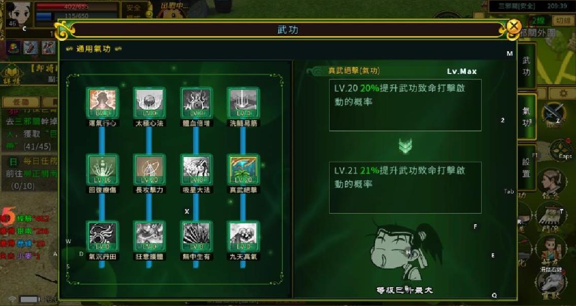 - 吸星大法:点满(20点),延长辅助武功持续时间