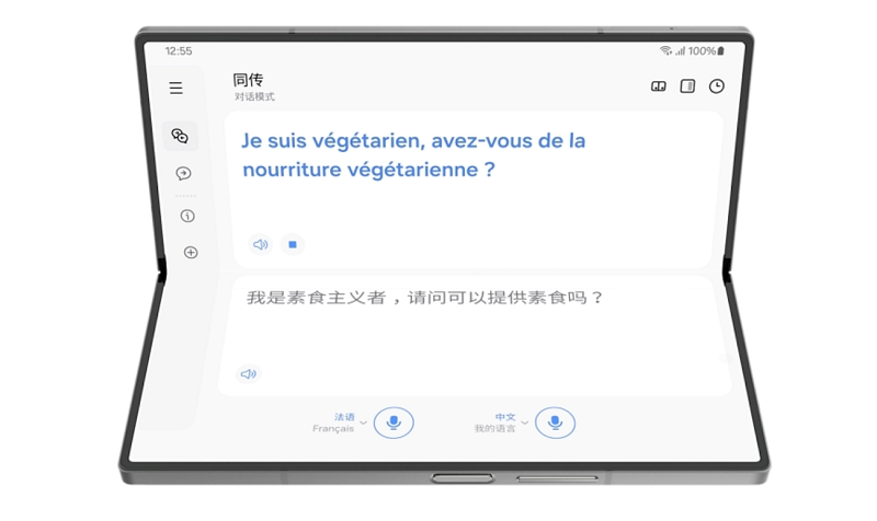 Galaxy AI 进一步提升了三星Galaxy Z Fold6的跨语言沟通体验。在同传功能中,新增的对话模式更好地利用了独特的双屏形态,可让对话双方方便地在主屏和外屏上查看翻译内容,实现更加自然的交流体验。不仅如此,同传功能中还提供了聆听模式,专为讲座、演讲等场合设计,让用户大幅度减少语言障碍,轻松理解演讲的内容。此外,通话实时翻译功能已不仅限于三星原生通话应用,其还扩展到了更多第三方应用中,让沟通无界限,交流更自由。