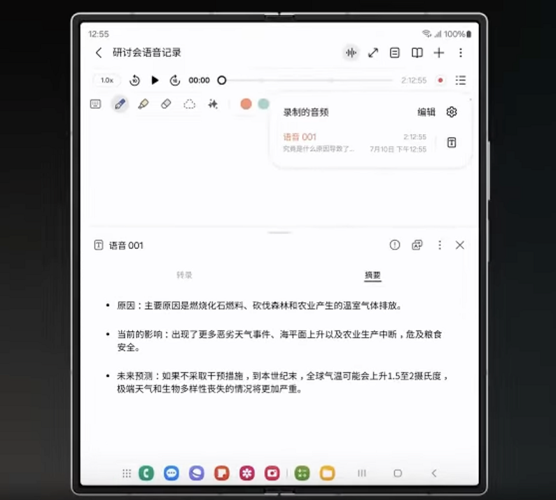 三星笔记APP中的笔记助手可提供翻译、提取摘要和智能排版功能,让用户能够更加轻松、简单地记录会议。转录助手可帮助用户直接在笔记中将语音内容转录、翻译以及提取摘要。此外,新增的PDF翻译功能,还能为用户准确翻译出PDF文档中的文字,并且翻译结果会直接覆盖在原文之上,除此之外, PDF文档中的图片和图表也支持翻译,既直观又便捷。三星键盘新增的帮写功能 可以根据用户输入的简单关键词,生成用于电子邮件或社交媒体等不同场合的建议文本。其中,针对社交媒体,帮写功能可深入分析用户过往发布的内容,并以此为基础生成贴合用户风格的内容。值得一提的是,在Galaxy AI的加持下,S Pen在三星Galaxy Z Fold6大屏上的使用体验得到了进一步扩展。新增的涂鸦生图 功能可根据用户绘制的简单草图智能生成图像,轻松创作出精彩的艺术作品。