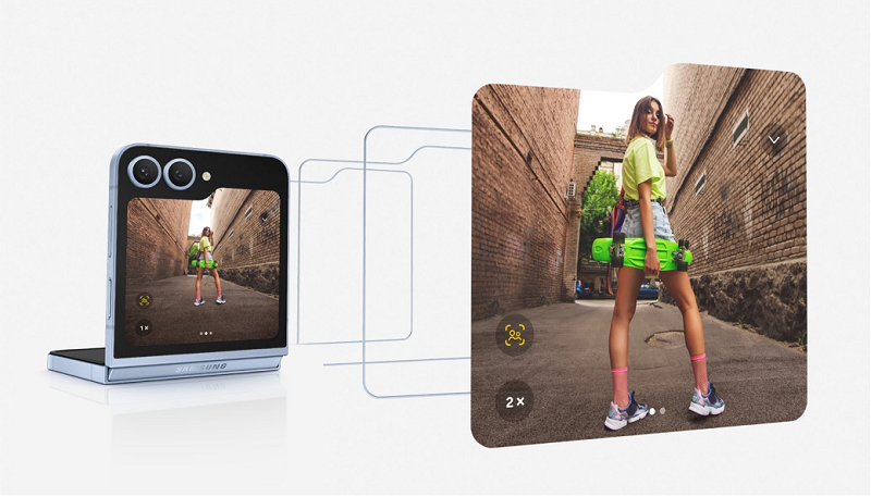 三星Galaxy Z Flip6搭载了升级的5000万像素广角摄像头和1200万像素超广角摄像头,能拍摄出画质清晰、细节丰富的照片,带来了更优质的影像体验。其中5000万像素广角摄像头支持2倍光学品质变焦,可以有效减少照片中的噪点;至高10倍的AI变焦则进一步丰富了拍摄体验。拥有HDR视频增强技术的夜拍功能可以在昏暗的环境中捕获到更为精彩的视频。