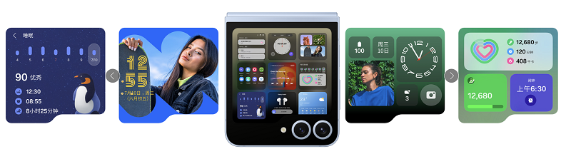 多种多样的个性化定制选项一直都是三星Galaxy Z Flip系列的一大特色,此次,三星Galaxy Z Flip6可分析用户的壁纸并给出屏幕布局的建议,比如移动时钟的位置、调整相框的颜色来突出壁纸,帮助用户轻松打造出观感更为整体的美观界面。