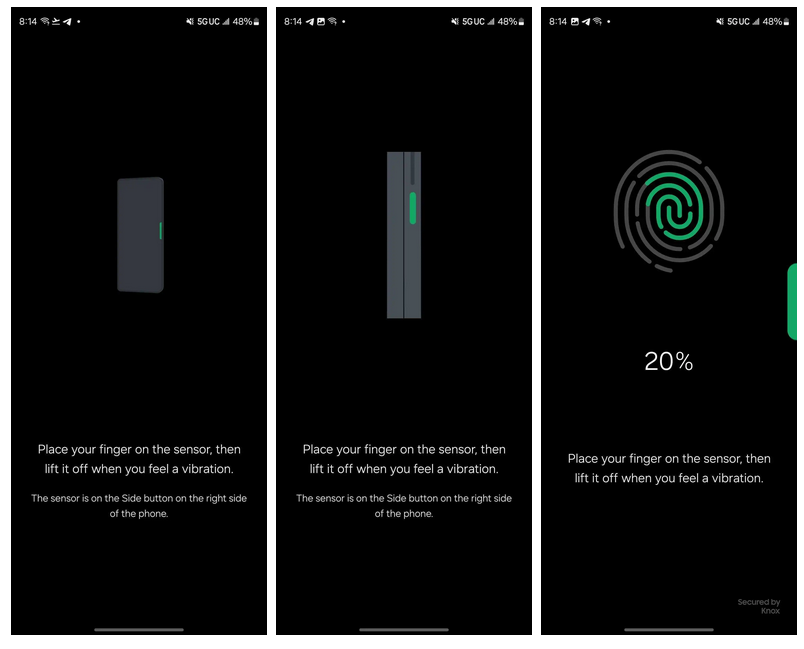 三星自 2019 年发布初代 Galaxy Fold 折叠屏手机以来,用户如果想要添加指纹,只能在打开内屏状态下添加操作,而时隔 5 年终于支持折叠状态下,注册添加指纹了。IT之家附上相关示意图如下: