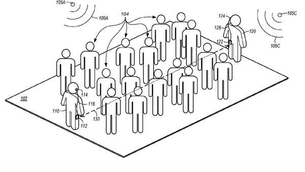 专利中的界面显示,附近的人会被标记在圆圈内。离得最近的人在中心圆圈,稍远的在外围。圆圈的大小代表了临时网络的有效范围。