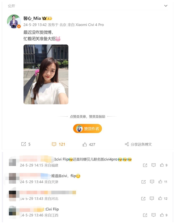 在评论区,网友纷纷猜测大招就是小米首款小折叠屏,可能命名为MIX Flip,也有网友猜测是Civi Flip。