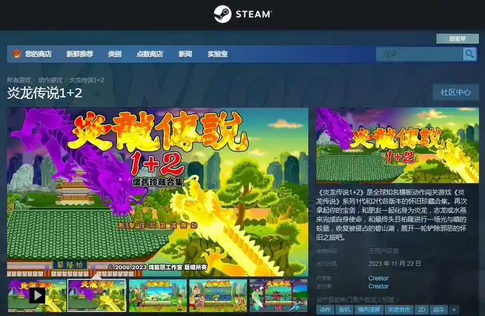 有消息称,国产经典游戏《炎龙传说 1+2》已于昨日在Steam平台发售,售价52元,支持简繁体中文。