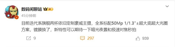 快科技5月31日消息,博主数码闲聊站暗示,小米15、小米15 Pro的光影猎人传感器再度升级,配备定制的豪威5000万像素主摄,拥有1/1.3英寸超大底以及超大光圈。