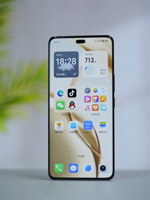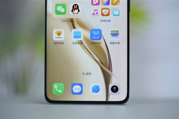 正面搭载一块6.78英寸的全等深悬浮四曲屏,能兼顾直屏的观感和曲屏的手感,同时也是一块3840Hz零风险调光荣耀绿洲护眼屏,支持AI助眠显示、类自然光护眼等功能,长时间使用更护眼。