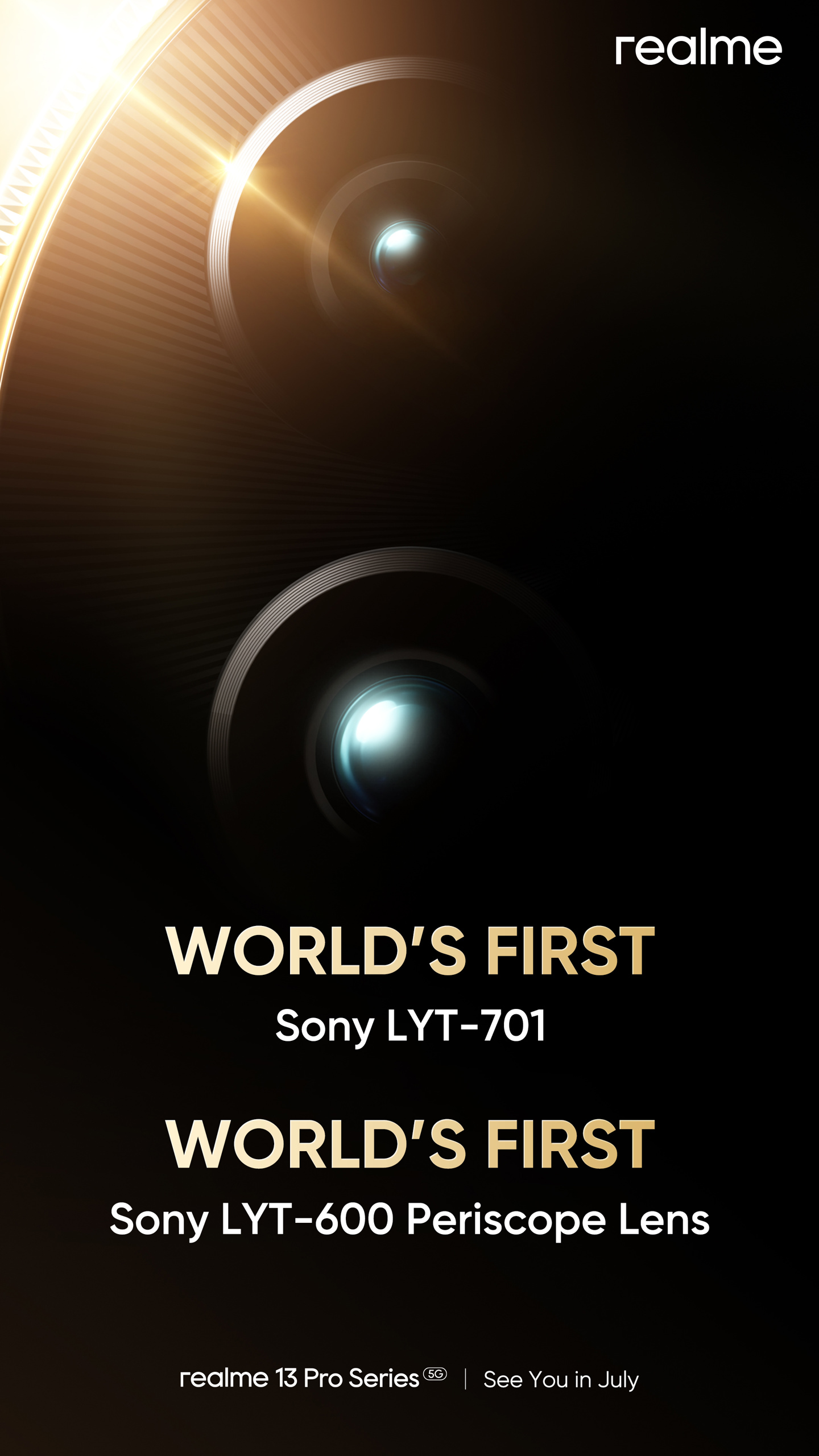 IT之家注意到,realme 此前已经官宣真我 13 Pro 系列手机将全球首发索尼 LYT-701 传感器与索尼 LYT-600(即 IMX882)潜望长焦镜头。
