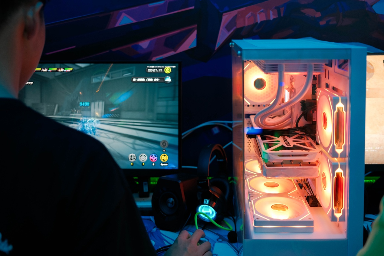 二楼的桌搭区域,影驰此次带来了一套非常少女的桌搭风格,搭载了 GeForce RTX 4070 Ti 金属大师 OC,性能颜值两不误。