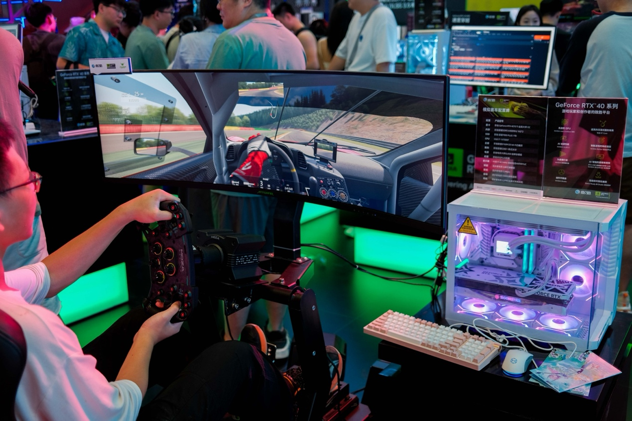 此外,影驰还设置了模拟赛车体验区,基于 GeForce RTX 4070 金属大师 OC 的强大性能,带来十分流畅真实的模拟驾驶体验。
