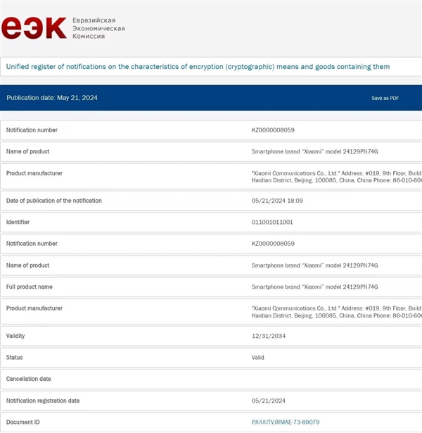 小米数字旗舰系列国行新机小米15、小米15 Pro、小米15 Pro钛金属卫星通信版已经入网,代号分别为24129PN74C、24101PNB7C、2410DPN6CC。