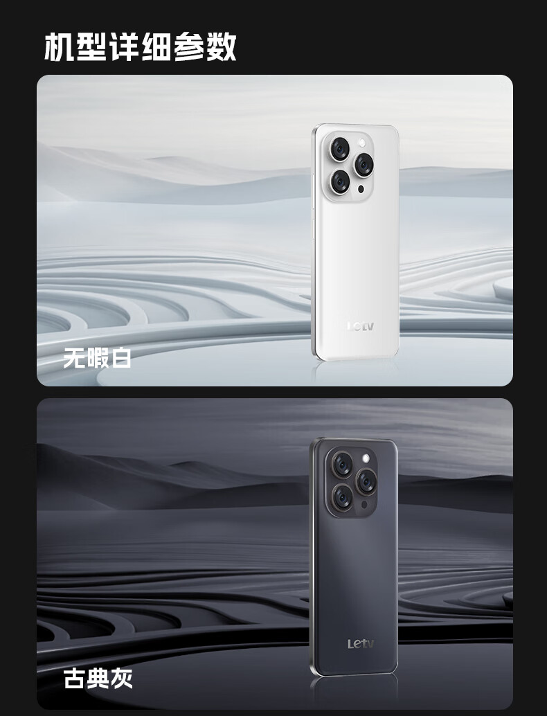 乐视 S3 Pro 手机提供无瑕白和古典灰两种配色,拥有 6GB+128GB 和 6GB+256GB 两种配置,售价分别为 699 元和 799 元,官方表示随机附赠 18W 快充头。