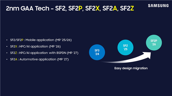 据悉,三星第一代2nm工艺SF2将于明年准备就绪,最先进的2nm工艺节点SF2Z将于2027年量产商用,它采用先进的后端供电网络(BSPDN)技术,可以提高电源效率。