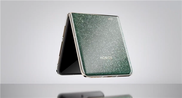 荣耀Magic V Flip限量高定款的后盖采用亮面设计,整体呈碧绿色,后盖上点缀着星斑,犹如一件镶满绿钻的艺术珍品。