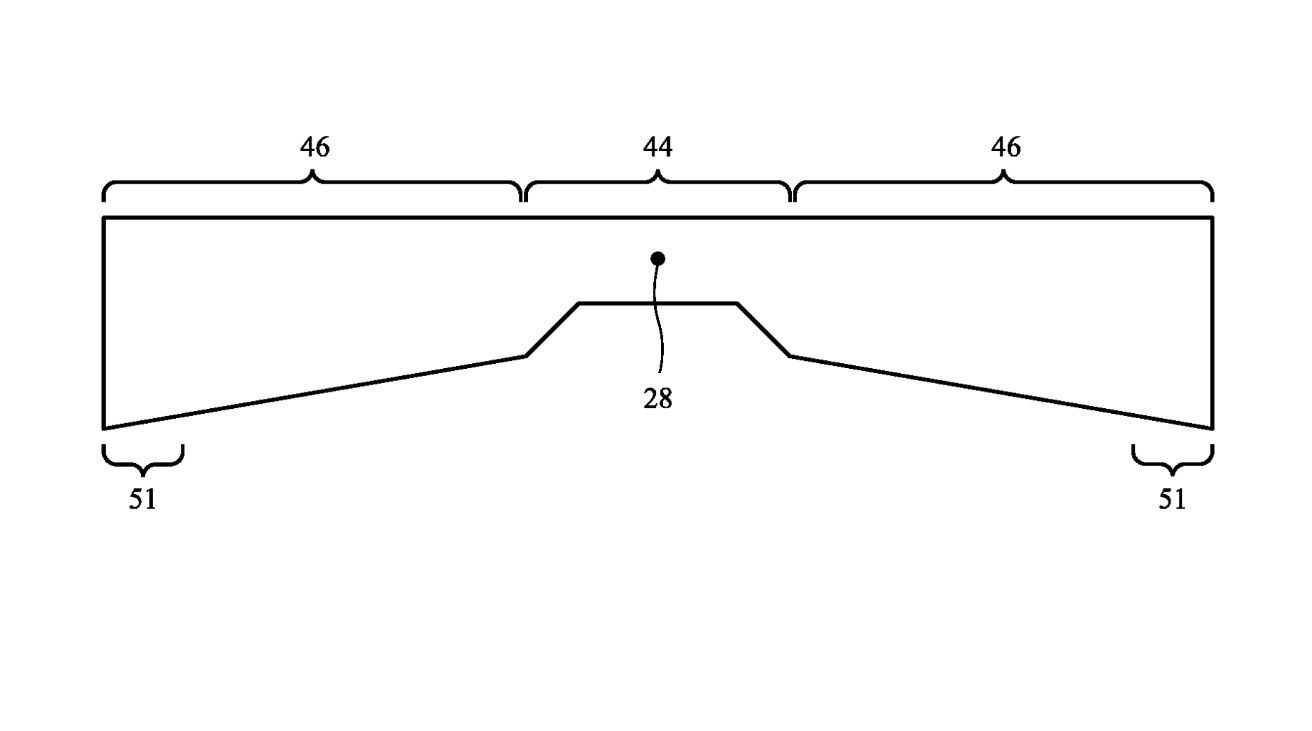 苹果公司在专利中探索了两项提高折叠屏耐用性的方案,其一是减少折叠、弯曲部分的厚度,把玻璃做得更薄;其二就是让屏幕的其它部分变得更厚。