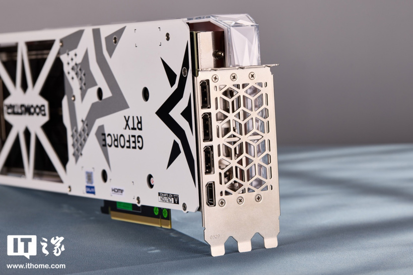 接口方面,影驰 GEFORCE RTX 4070 Ti SUPER 星曜 OC 显卡配备了配备了 3*DP1.4 接口和 1*HDMI2.1 接口,最高支持 8K60 帧输出。好了,以上就是IT之家给大家带来的影驰 GEFORCE RTX 4070 Ti SUPER 星曜 OC 显卡开箱图赏。
