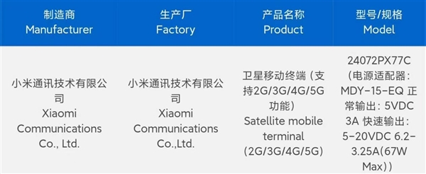 小米即将发布的新一代折叠屏手机MIX Fold 4已通过国家3C质量认证,型号为24072PX77C。结合此前的泄露信息和@数码闲聊站的确认,这款新机不仅支持2G/3G/4G/5G网络,还标配67W的MDY-15-EQ充电器。