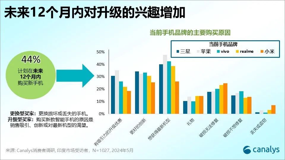 Canalys 最新消费者研究显示,44% 的印度消费者预计将在未来 12 个月内购买设备,其中绝大多数是“升级型买家”,他们关注的是包括 5G 技术在内的最新创新。Canalys 预计,在即将到来的节日季,整体出货量将实现中个位数增长。