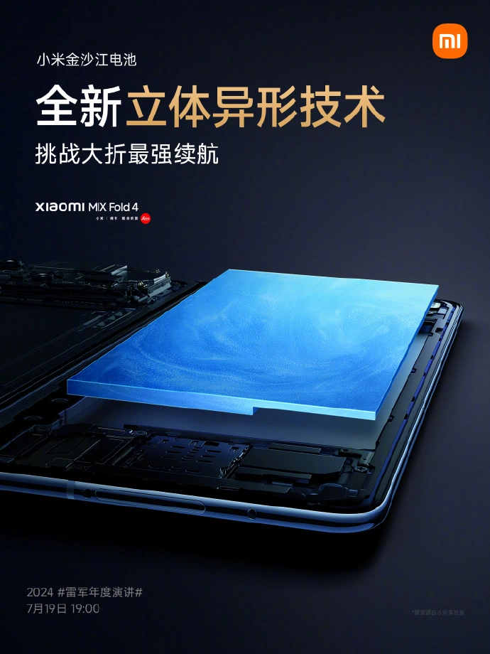 IT之家 7 月 18 日消息,小米手机今天继续预热旗下新品 —— 即将在明晚雷军年度演讲活动中登场的小米 MIX Fold 4 折叠屏手机。这款手机将搭载小米金沙江立体异形电池,其号称“为折叠屏量身定制”,空间利用率可提升 9%,电量可提升 260mAh。