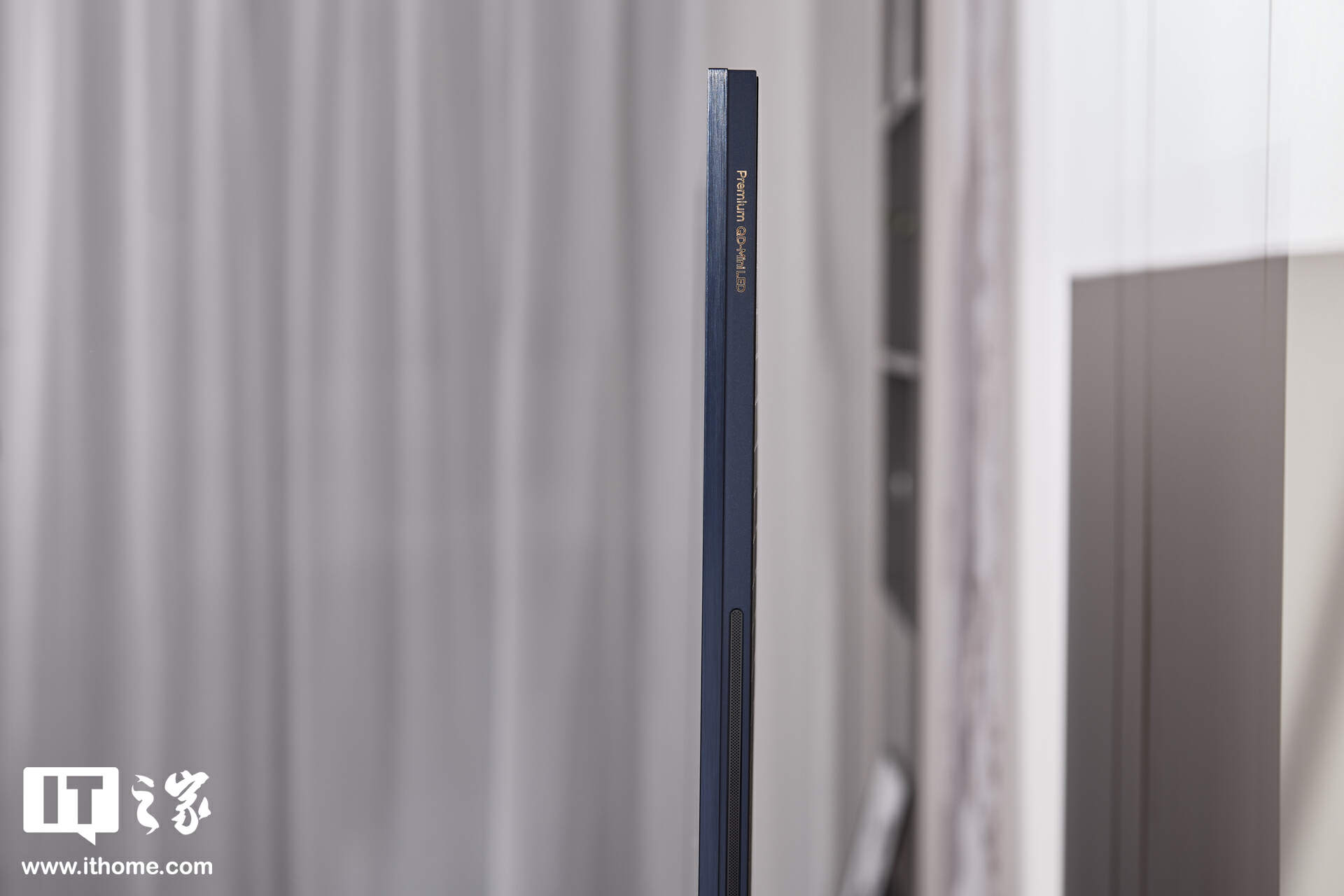 再比如侧边框侧的 Premium QD Mini LED 金标,作为高端画质的印证,彰显了产品的高端属性,也成为设计上的点缀,还有中框上的细密的出音孔,保证了功能性又兼具了设计感。