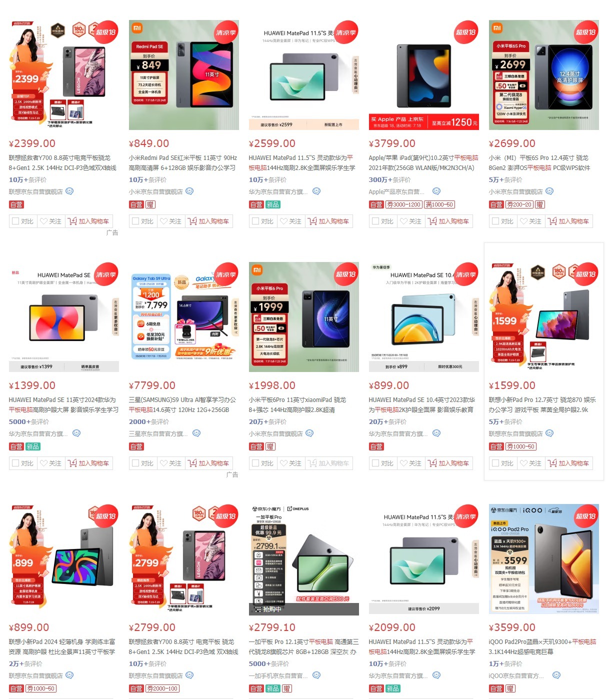 大家不是说,10英寸以上的平板电脑是目前最受欢迎的尺寸吗?没错,从销量占比来看,10英寸以上的平板电脑占据了大部分的市场份额,但是这也导致市场竞争非常激烈。仅小米一个品牌,就有六款10英寸以上规格的平板电脑处于在售阶段,如果把华为、OPPO、vivo、荣耀等品牌全部算上,产品型号则高达22个。