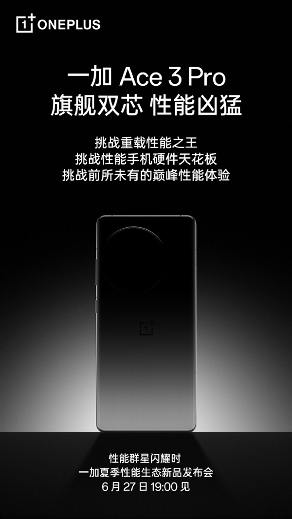 快科技6月21日消息,今日,一加宣布一加Ace 3 Pro将于6月27日正式发布,号称“年度性能巅峰大作”。