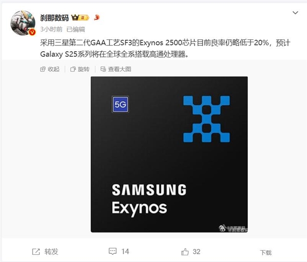 文章来源于互联网:快科技-曝三星Exynos 2500良率低于20%:Galaxy S25无缘首发