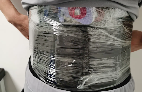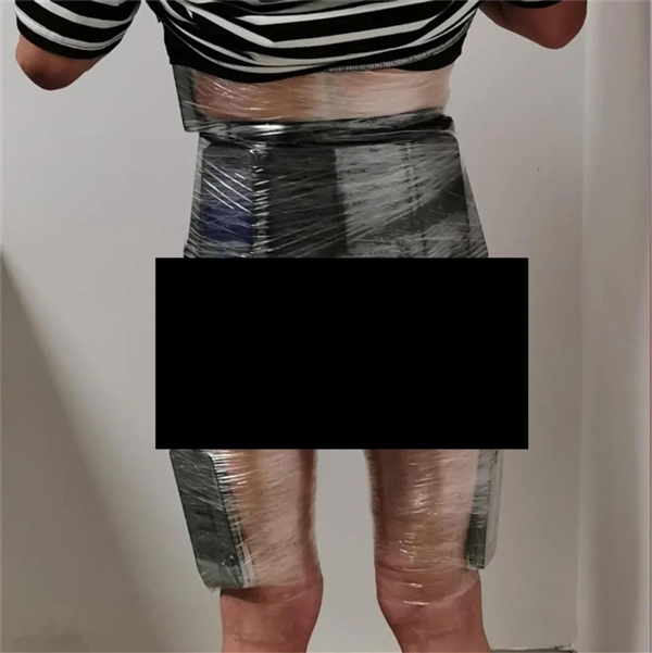 经进一步检查,关员在该旅客腰腹部及大腿部发现用塑料膜、弹力绷带绑藏的苹果牌旧手机40台。