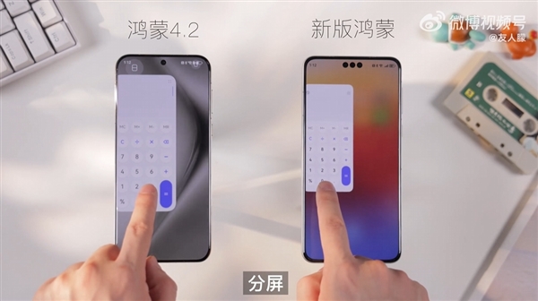 系统内部还加入了大量的毛玻璃底层覆盖,比如分屏界面,虽然HarmonyOS 4.2也非常好用迅速,但对比HarmonyOS NEXT显得有些“傻快”,新系统在底层加入毛玻璃效果,而且上下切换非常丝滑。