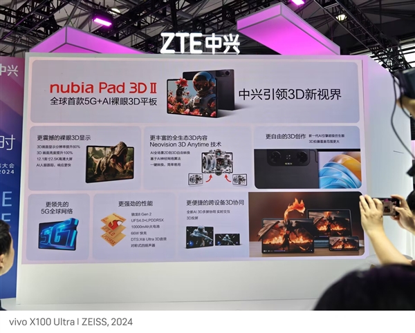 快科技6月26日消息,在MWC上海展会上,中兴带来了和第二代裸眼3D平板电脑nubia Pad 3D Ⅱ,这也是全球全球首款5G+AI裸眼3D平板。