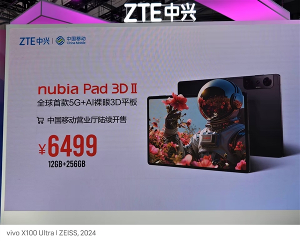 官方介绍,nubia Pad 3D Ⅱ将会在中国移动营业厅陆续开售,12GB+256GB版本售价6499元。