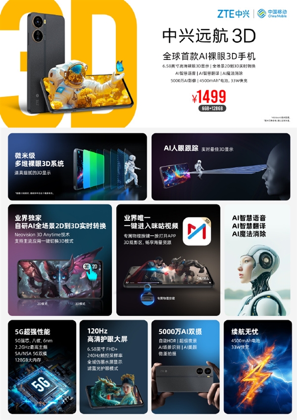 文章来源于互联网:快科技-中兴首创AI裸眼3D手机!中兴远航3D开售:1499元