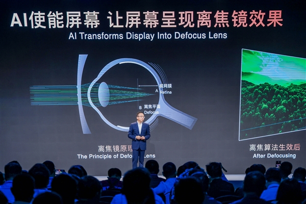 在MWC上海的演讲中,赵明首次向外界展示了两项突破性的端侧AI创新:AI离焦护眼技术和AI换脸检测技术。