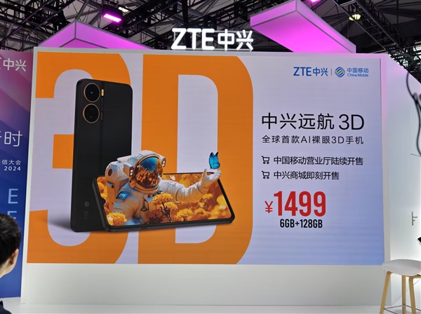 快科技6月26日消息,今天,中兴联合中国移动在2024MWC上海展发布全球首款AI裸眼3D手机—中兴远航3D,售价1499元(6GB+128GB)。