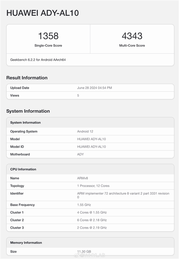 麒麟9010 CPU由1×2.3GHz泰山核心+3×2.18GHz泰山核心+4×1.55GHz Cortex-A510组成,GPU为Maleoon 910 750MHz。