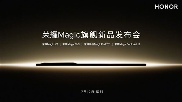 届时,荣耀Magic V3、荣耀Magic Vs3、荣耀平板MagicPad 2、荣耀MagicBook Art 14多款新品将正式发布。