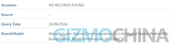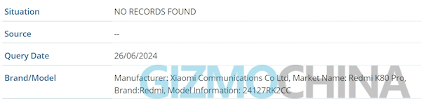 快科技7月2日消息,日前,Redmi K80、Redmi K80 Pro现身IMEI数据库,前者型号为24122RKC7C,后者型号为24127RK2CC。