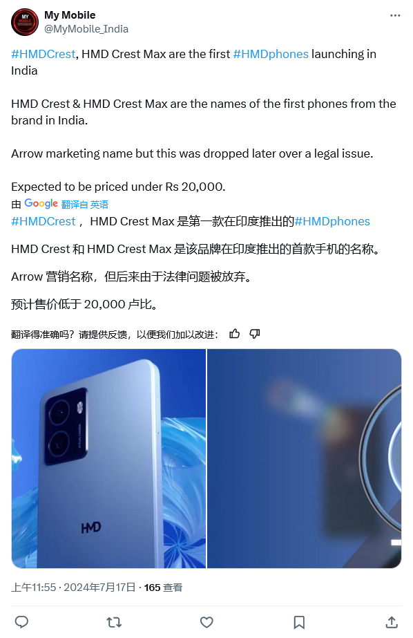 文章来源于互联网:IT之家-7 月 25 日发布,HMD 品牌在印度的首款手机系列 Crest 开启预热