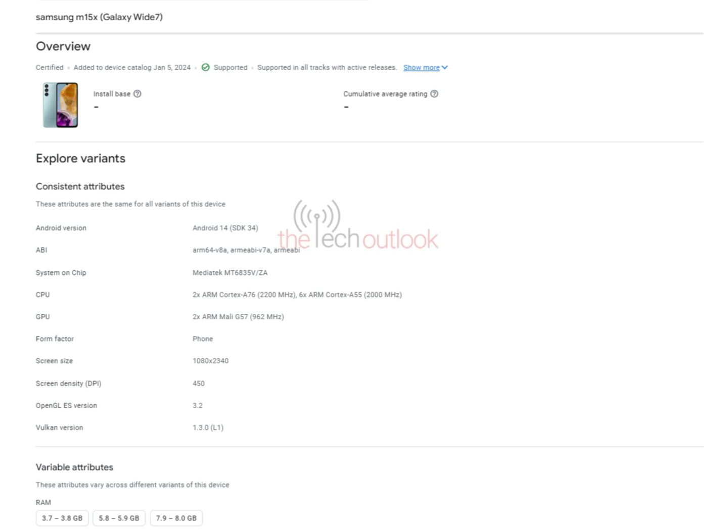 IT之家 7 月 23 日消息,据 The Tech Outlook 报道,三星 Galaxy Wide7 手机已经现身 Google Play Console 数据库,型号为 SM-M156S。