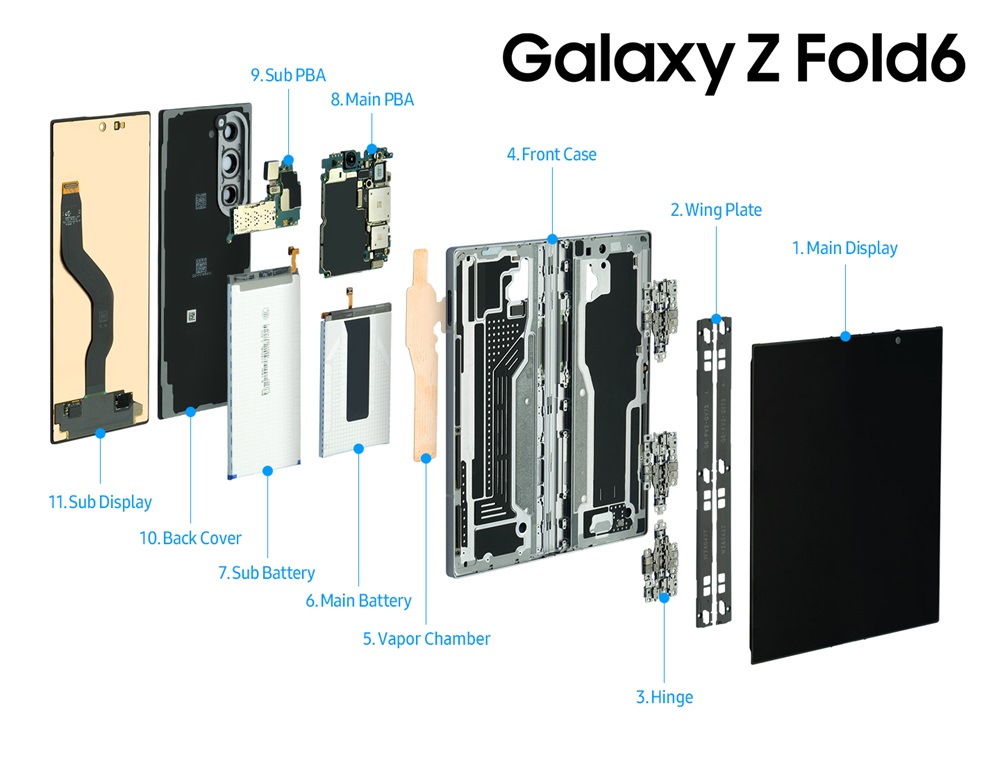 IT之家 7 月 23 日消息,三星发布了 Galaxy Z Fold6、Z Flip6 和 Galaxy Watch Ultra 的内部结构图,并详细解释了各个组件的功能。