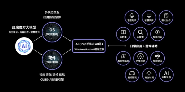 随着人工智能技术的迅猛进步,AI正在为各行各业带来颠覆性的变革。作为游戏手机领域的领军品牌,红魔积极投入AI研发,致力于将AI技术融入游戏体验,并于本次发布会正式发布红魔自主研发的红魔魔方AI大模型。依托于庞大的1600亿量级数据库和超过2万种不同场景的训练,涵盖图片处理、文生图、文生文、AI助手、AI性能调度、AI陪玩、AI键位触发器、声像探针、高光时刻等一系列功能,不管游戏还是日常应用都带来前所未有的AI体验。