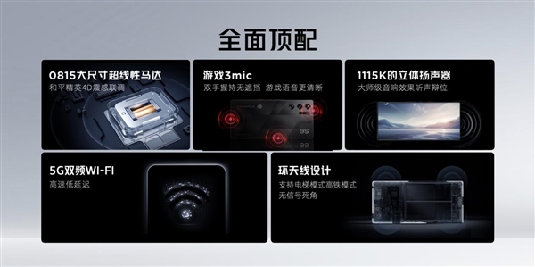此外,红魔9S Pro系列标配红外遥控、全功能NFC、DTS: X Ultra 专业认证的立体声扬声器;3.5mm耳机孔,0815大尺寸超线性马达,系统级震感优化,游戏体验更沉浸;行业最快520Hz触控采样率的触控肩键;环绕式天线设计,同时支持WiFi 7、支持5G双频Wi-Fi并发,有效抗干扰传输速率更快。