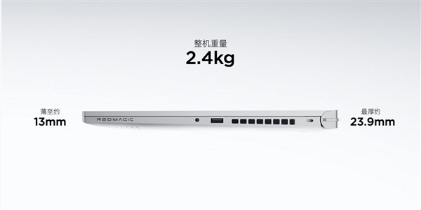 红魔刷新游戏笔记本做工新标准,航空铝合金材质,经过32道CNC一体精雕成型。机身最薄处仅13mm,轻至2.4kg,内置80Wh大电池,支持100W的PD快充,提供暗夜黑和冰川银两款配色可选。