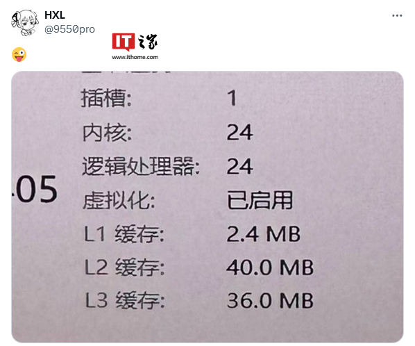 另一消息源 HXL 还曝料分享更多细节,表示该处理器配备 40MB 的 L2 缓存和 36MB 的 L3 缓存。