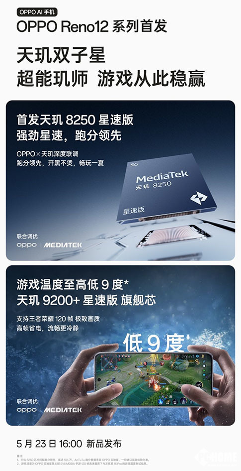 OPPO今日宣布,OPPO Reno12系列全系均采用了性能与能效领先的天玑平台旗舰芯片,在游戏中的温度较其他产品至高低9度,能够让用户享受高帧率游戏的同时,还能通过低发热兼顾手感,并大幅度提升游戏续航表现。