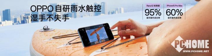 雨水触控功能专为湿手、汗手等典型游戏场景下的触控失灵而优化,湿手可实现高精度、高成功率的触控。配合IP65防尘防喷淋认证,Reno12系列可随时随地,放心开玩。