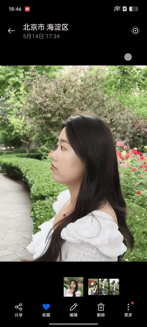 可以看到,Reno 12 Pro将实况照片上传到小红薯后,浏览时依然会动,而不是变为了静态照片。相比于静态照片,实况照片会更有生命力和感染力。现在很多姐妹都追求更加自然真实的照片,而不是过度追求精修图,实况照片就是非常不错的选择,而且用户还能自行编辑实况照片的封面。之前安卓手机的实况照片传到社交平台就变成了静态照片,不能让大家感受到自己拍摄这张照片时候的快乐,现在Reno 12 Pro解决了这个痛点,可以让大家更加自由自在的上传更有趣的实况照片,非常贴心了。