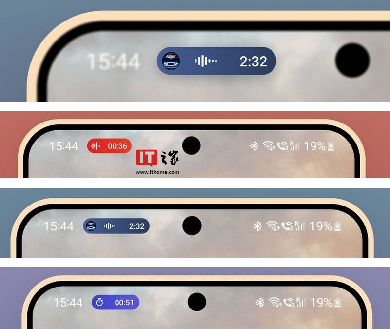 消息源表示三星 One UI 6 中,该状态栏上的椭圆图标只用于来电提示,而在 One UI 7 中,将会新增秒表、录音等功能,并认为这种智能功能的拓展并不是在模仿苹果。IT之家附上演示效果图片如下: