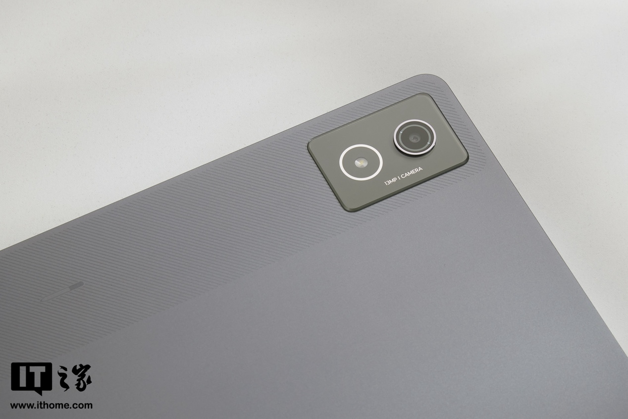 金属外壳上精致的纹理若隐若现,并且延续了小新平板标志性的对撞设计。金属机身整体经过了精细的喷砂处理工艺,观感和手感都颇为优秀。