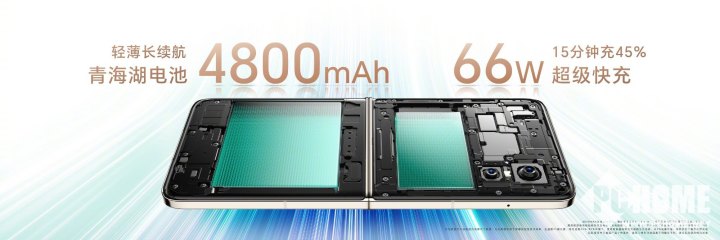 续航方面,荣耀Magic V Flip采用了领先的硅碳负极电池技术,使电池容量达到4800mAh,领跑竖折品类,支持66W超级快充,不光续航持久,没电的情况下也可以快速回血。